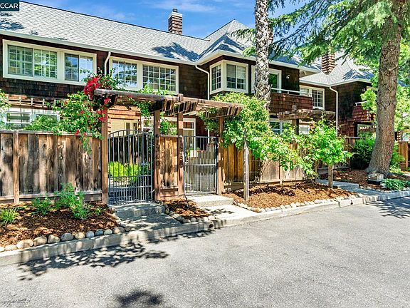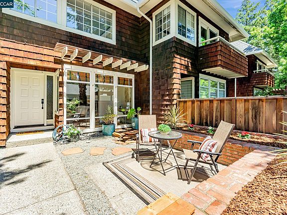 Privately tucked away in a charming 7-unit community with a Cape Cod/Carmel feel, this darling townhouse features a welcoming front patio with grapevines, raised flower beds, and a tranquil pond. Inside, the open layout includes a living room with decorative stone wall, sun-filled office/sunroom, dining area with wet bar, and a kitchen with stainless steel appliances, granite counters, overlooking the private backyard, perfect for relaxing under the trees. Upstairs are two spacious ensuite bedrooms, both with skylit bathrooms—one recently remodeled with a double vanity. Freshly painted, new carpet, garage with attic storage, and LOW HOA fees. Close to BART and downtown Walnut Creek -ideal for commuters and those who love dining, shopping, and nightlife!! This is a MUST SEE!
