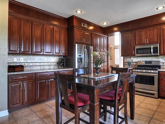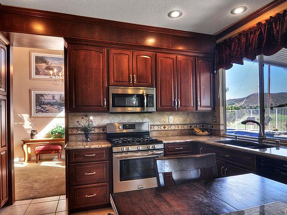 A rare opportunity at this price! Nestled on a private, premium-size, entertainer's backyard with unobstructed views of the mountains and golf course, and a sparkling pool and spa, this dramatic home offers an engaging outdoor living that your guests will be captivated by. The formal entry beckons your guests into the elegant formal living & dining areas highlighting towering ceilings with recessed lighting. The grandeur and comfort extends to the home expansive great room presenting a completely remodeled kitchen boasting top-tier granite countertops and Stainless Steel appliances. Custom amenities include all hardwood cabinetry, soffit and moldings. Walls of windows with amazing views of the golf course & the backyard frame the ever-spacious family room. An enchanting fireplace decorated with granite, crown moldings & surround sound-wired completes it. The downstairs bedroom/office offers a built-in black Galaxy granite Desktop with cabinets and bookcases. It's paired with a remodeled bath showcasing Typhoon Bordeaux granite. Your generous master suite with a private en-suite bath is a serene retreat to relax and recharge with peaceful views and seating areas. Sizeable secondary bedrooms, Jack and Jill bath and a 3-car garage enrich this home's value.