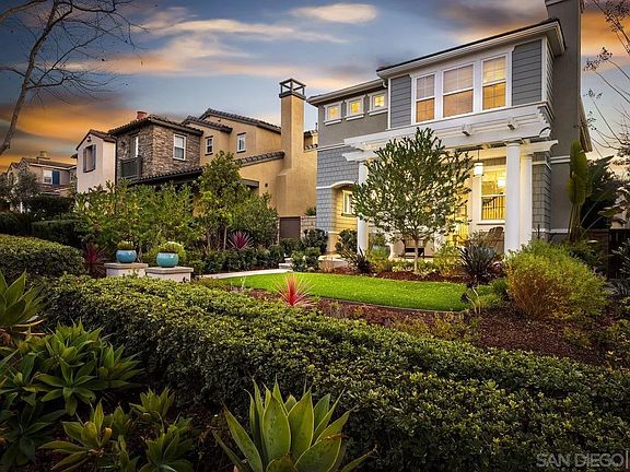 Gorgeous Cape Cod style home situated in the Manzanita Trail community of Pacific Highlands Ranch. Walking distance to the Village at Pacific Highlands Ranch featuring shopping, restaurants, Trader Joe's, Starbucks, Crunch Fitness and more. BRAND new carpet. The first floor features formal living and dining rooms, bedroom and full bath. Open floor plan family, dining room and kitchen with wall-to-wall counter and cabinet space, oversized island with seating, GE and Bosch appliances, walk in pantry and tiled backsplash. 2nd floor offers a split floor plan with primary bed and bath retreat with walk in closet. Additional 2 beds and full bath plus laundry room with sink and built in cabinets.