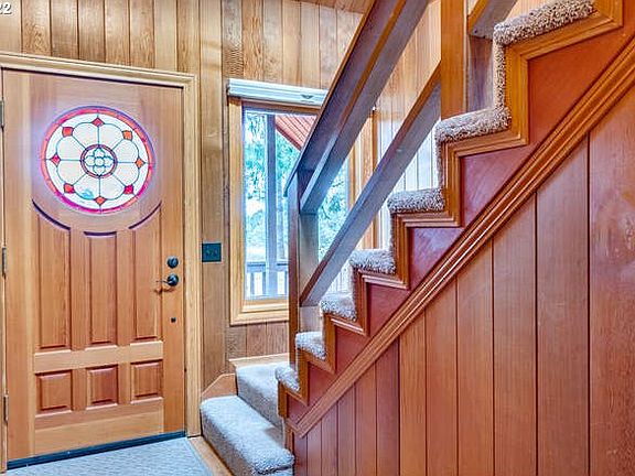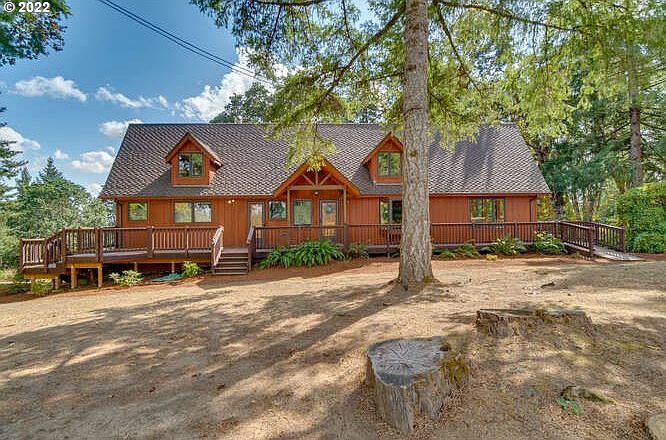 One of a kind home w/peaceful setting & 10 acres close to town! Possible dual living w/completely finished walk in lower level: 2 bedrooms, full bath, office & Living space! Warm wood walls & ceilings throughout main living spaces make for a calming retreat. Main floor has a spacious main suite w/slider to deck. Cozy kitchen w/nook & fireplace. Soaring vaulted ceilings, windows w/views & pellet stove in living room. Up has second primary suite w/bath. Large loft/office/living space w/views!
