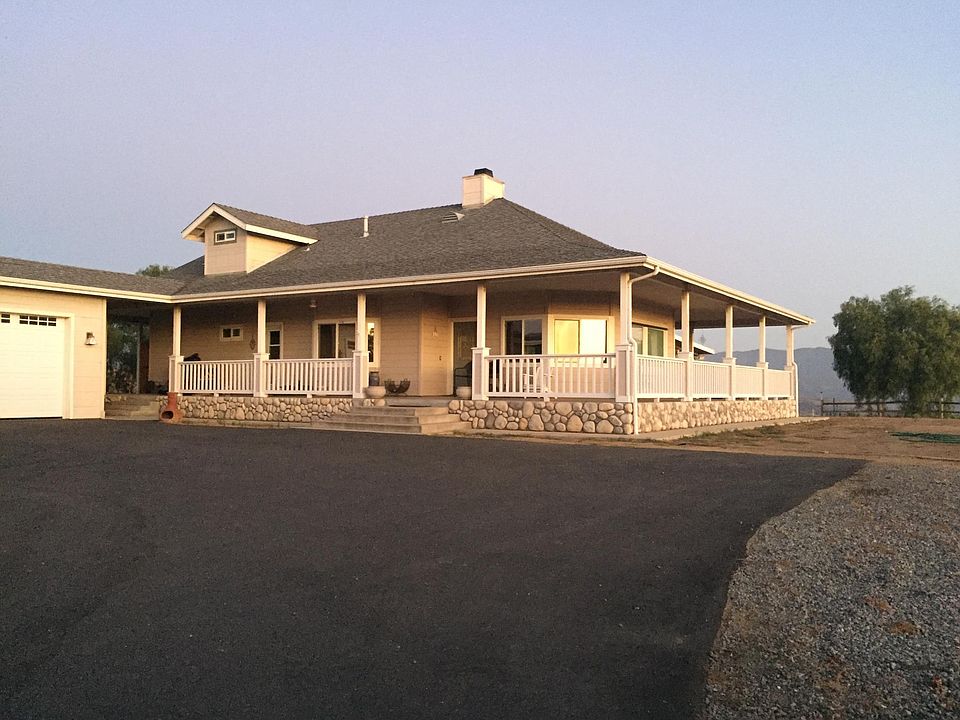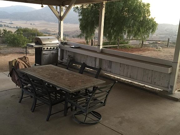 5 Acres, Panoramic views, Security gate, Fenced, well water, Solar, Mature shade trees, A/C, Close to schools and town, Large detached 4 car garage. overlooks organic citrus groves and vineyards, quiet, private. Spectacular sunsets Owner pays for trash and sewer. Tenat pays for electricty, gas and set fee for water.