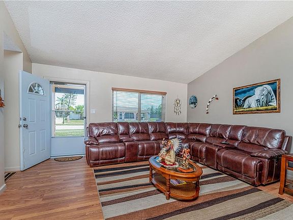 This home is not only located in the much sought after Gardens of Gulf Cove in Port Charlotte Florida near the Englewood border it also has 3 bedrooms, 2 Bathrooms and a two car garage. The beaches in Englewood and Boca Grand are only 15 minutes away. The owners are selling this home turn key furnished. Check out the 2 car garage. Its custom aquarium paint job, Cedar Bar and pool table make this a great place to hang out and relax with family and friends. The roof was replaced in 2016 and the windows in 2015. The enclosed porch was made into a workout room and separate workshop with storage. There is even an electronic doggy door leading into the fenced yard. The living room, kitchen and dining area are under a cathedral ceiling. This home is clean and move in ready. Just bring your personal items and your set. Upgrades include master bathroom and laminate flooring in the living room, hall, and 3rd bedroom. The owner said the air conditioner was just rebuilt. In the Gardens of Gulf Cove there are 4 lakes, underground utilities, sidewalks, street lights, county water and sewer. The low yearly fee of $332.75 includes 2 Community Pools, (one is heated) Tennis Courts, Shuffleboard, Bocce play, Basketball court, Recreation center, exercise equipment, pool tables and a friendly atmosphere. Across the street is a 9 mile County owned blacktop bicycle/walking trail. Shopping and entertainment is all around. This area with its friendly atmosphere and many activities is truly one of the world best kept secrets.