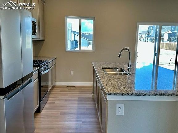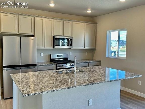 Brand New 2 story home in Meridian Ranch. Close to schools parks and a rec center. As you enter your are greated by a grand entrance with luxury venial plank flooring. This home flows well from the front door around to the separate dining area into the kitchen and family room. The perfect home for entertaining or having get togethers. The kitchen has solid surface counter tops and a large island with extra space for seating. Upstairs you will find 3 bedrooms plus a loft and 2 bathrooms. The primary bath has a separate soaking tub and shower with a large walk in closet. The basement has a large rec room with one more bedroom and bathroom You don't want to miss this beauty.