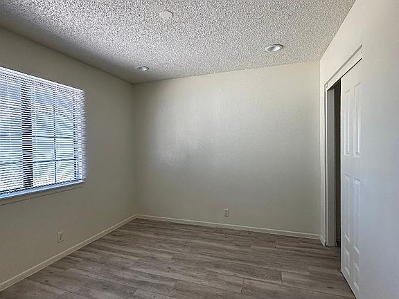 Renovated 1 story 2 bed 1 bath unit in quiet neighborhood. Close to shopping center, schools and Hwy 18. Shared laundry room and garages optional to rent at add. expense. Water and trash paid.