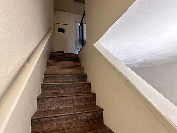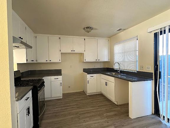 Renovated 2 story 2 bed 1.5 bath with small patio in quiet neighborhood. Close to shopping center, schools and Hwy 18. Shared laundry room and garages optional to rent at add. expense. Water and trash paid.