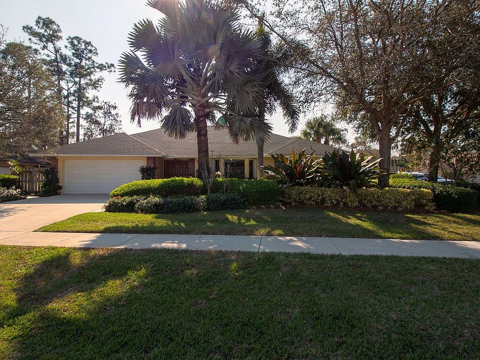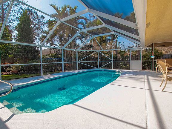 Beautifully maintained pool home on corner cul de sac lot. Newly renovated pool. Updated kitchen and baths. Red Oak flooring throughout. Ample closet space - double walk-in in master. Accordion hurricane shutters, impact glass on kitchen windows. Wired for generator plug in. Cabana bath. New insulation in attic. Resurfaced, screened patio. Lushly landscaped, private fenced backyard. Sprinkler on well w/new irrigation pump Motion activated outdoor lights. New laundry sink. No HOA!