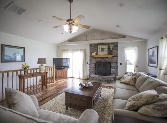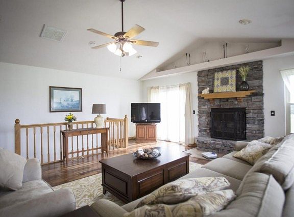 Beautiful Walk Out Basement Home on 4 Acres! Great Curb Appeal with Covered Doorway and Brick Columns. The Living Room is Straight out of a Magazine with a Stone Fireplace, Vaulted Ceilings, and Hardwood Floors. Large Windows let in plenty of light. The Open Floor Plan is Great For Entertaining. Beautiful Hardwood Floors and Vaulted Ceiling Continue into the Kitchen. Other notable features of the Kitchen include the Island and Stainless Steel Appliances. Beautiful Master Suite with High Ceilings and Hardwood Floors. The Master Bath has Porcelain Tile Floors and a separate Shower and Bath Tub. The Finished Walk Out Basement is the Perfect Place to Entertain or Relax. The Extra Space Downstairs is great for Storage or a Work Room. Relax on the Back Deck and Enjoy your Private Back Yard.