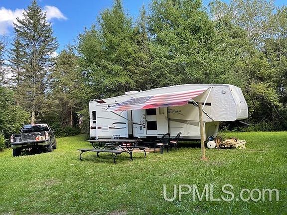 A beautiful 11 Acre parcel for your new home or camp. Has 40' deep 6" Well with hand pump and electric Pump. A few beautiful building spots for your camp or home and garage. 200 AMP underground electric service on site. Apple Trees, Wild Rhubarb, Deer Blind, 30Ft Fifth wheel, new culvert with nice access to one beautiful building spot to put garage where the camper is or build there as well. 5th Wheel, 2004 gmc sierra 2500hd truck with hitch and 10X20 portable garage shelter included also. Small runoff crick which is dry in summer and flows in rainy fall and spring. Another great building spot a bit down the trail farther back also. Plowed Year-round access just off old M-35, garbage service, and internet and cable service at the road. Make this your next UP Getaway! Located between Escanaba, Gwinn, Marquette and Munising. NO TRESSPASSING, PLEASE DO NOT WALK PROPERTY WITHOUT A LICENSED REALTOR.
