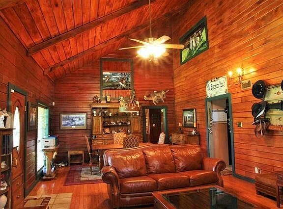 * Beautiful, Spacious Cabin With An Open Floor Plan, * Following Appliances Will Be Left In The Home: Refrigerator, Ice Maker, Stove, Oven, Washer, Dryer * Will Love The "Hidden, Secret Room" The Secret Room Is Revealed When Opening A Book Case In One Of Bedrooms Upstairs, This Secret Room Is Great To Use For Storage Because Of Its Size, It Also Makes For A Perfect Playroom For Kids, You Can Exit The "Secret Room" By Pushing On The Backside Of Another Book Case (Which Is Actually The Closet Of Another Bedroom) * Beautiful View Of The Pool And The Pond From The Front Porch, * Swimming Pool Was Custom Built And Includes A Rock Waterfall That Spills Over Into The Deep End, Pool Also Enclosed By Iron Fencing For Safety, * Detached "Man Cave" Complete With Bedroom And Full Bathroom, This Really Could Be Its Own Living Space * Stocked Fishing Pond, My Boys (Who Are Only 9, 7 & 5 Years Old And Were Fishing With Hot Dogs) Pulled A 16 Pound Catfish From This Pond A Few Weeks Back, * Enclosed Gazebo With Deck That Sits Right By Pond, * Huge Barn That Has 5 Stalls And An Enclosed Tact Room, * 52' Covered Parking Perfect For Parking Boats, RV's, etc (There is 50amp Hook Up At This Site If You Have RV You'd Like To Keep