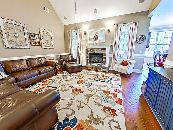 Step inside this dream layout and be greeted by vaulted ceilings, eight foot doorways and spacious rooms that flow effortlessly from one to the next. The great room and dining room greet you with beautiful wood flooring, heavy molding, electric fireplace and surround sound speakers. The kitchen is a chef's delight with granite countertops, stainless steel appliances, tile backsplash and opens up to a family room complete with wood burning fireplaces for cozy evenings.