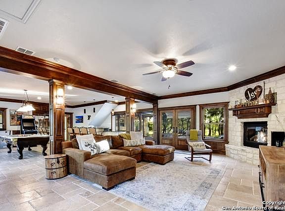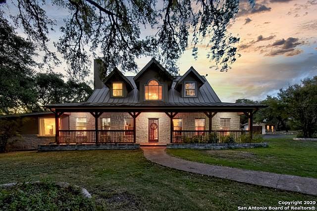 8+/- private and oak studded acres featuring a sprawling 4105+/- sqft ranch home, incredible outdoor living complete with lagoon style pool, 3 bay garage, workshop, and green house. Just a 20 minute drive from San Antonio, quietly tucked away behind a stately gated entrance, the paved narrow approach will create a sense of wonderment as you are transported from the hustle and bustle of the city to the ease and tranquility of country living. Great for indoor and outdoor entertaining, this one of a kind, 2 story home boasts two spacious living areas situated just off either side of the sparkling pool and spa, with a well-appointed eat-in kitchen central to all the action. The master suite is located downstairs and showcases his and hers closets, jetted spa tub, and travertine walk in shower. You'll find two guest bedrooms located up sharing a bath and a fourth junior suite just above the gameroom. Not to be overlooked, is an inviting formal dining room accented by a beautiful limestone fireplace ready to host a family dinner filled with laughter. Get lost roaming around the slightly rolling Hill Country acreage adorned with heritage oak trees, native grasses and the makings a great pond. Ideal for gardening and fully fenced for pets and livestock. Plenty of room for home projects in the 3 bay garage with diamond plate flooring and workshop/golf cart garage. Low taxes, high enjoyment ranchette in Bulverde!