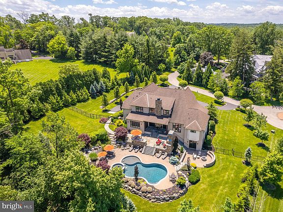 Welcome to one of Gwynedd Valley’s finest estate homes. Once our sellers completed their search for the perfect lot to build their custom retreat, they teamed up with noted architect Rene Hoffman, designer Allison Forbes and the area's premier builder Guidi Homes to create one of the area's finest custom homes. No detail was overlooked in the execution; with the goal of building the perfect retreat designed with family, entertaining and easy everyday living in mind. Tucked away in The Estates of Gypsy Hill, you are met by the sweeping governor’s driveway, meticulous landscaping and a beautiful front entrance. Upon entering the home, you are immediately struck by the abundance of natural light from the sweeping custom grand stair, the spacious open floor plan, and the front to back design. The foyer flows into the adjoining open dining room and large two-story great room accented by multiple Juliet balconies, custom wood beams, custom light fixture, a cut stone fireplace and stone accents. The large custom kitchen is a chef's delight and offers plenty of room to work and entertain with a large center island, high-end appliances, including a large six burner Wolf stove with double oven and griddle, Sub-Zero and wall oven and microwave, and a second counter space between the kitchen and great room offers additional seating. The large morning room offers access to the rear covered porch and views of the pool and rear entertainment spaces. In between the kitchen and dining room is the large custom butler’s pantry with ice maker, ample storage, custom sink, domed ceiling and custom lighting. The rear family entrance offers access from the extra-large three car garage and has a small work station, powder room and a large laundry room. Just off the foyer is a second guest powder room, 3-stop elevator and beautiful home office with coffered ceiling and custom wainscoting. The first-floor primary bedroom is the owners retreat, with an extra high tray ceiling and private access to the rear covered porch and pool area. The owner’s large marble spa bath has a double walk-in shower, soaking tub and custom double vanities. There are two well-appointed walk-in closets just off the owner’s bath. Take the elevator or the grand sweeping stair to the second-floor lounge with wet bar, small refrigerator and custom cabinets. The second-floor lounge and main hall overlook the great room from three beautiful Juliet balconies. The first guest suite has direct access to a large bath with double vanity and access to the hall. There are two additional bedroom suites, each with a private bath, a large walk-in closet for additional seasonal storage, and a large fourth bedroom - currently used as the bunkhouse. The daylight lower level is an entertainer's dream with a large family room, extra-large bar with two beverage refrigerators, wine storage, ice maker, dishwasher, and sink; a billiards room, private gym, game room, dining area, private changing room and cabana bath. Walking out the lower level there is a lower patio with a fire pit and sitting wall, perfect for a nighttime cigar. Just off the kitchen, great room and primary bedroom is the covered porch with heat lamps and steps to the large upper patio with outdoor fireplace and grill area with a Wolf grill, sink and storage. The pool level offers additional seating areas, pool with wading area and hot tub. The private, professionally landscaped grounds with irrigation are meticulously well-kept and offer the perfect setting for everyday family living and large-scale entertaining. No detail was overlooked in the completion of this custom estate home, and there are too many custom details to list each one. Located in the heart of Gwynedd Valley with access to local trails and parks. This property is just a short drive to local shopping, dining, and a nearby Whole Foods, while the proximity to public transportation and major roads make this an easy commute to both Center City and New York.