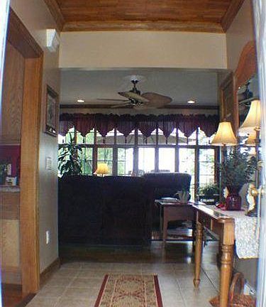 This 3-BR/2-1/2 Ba 1,872 Sq. Ft. Ranch will catch you by surprise. Original Builder and current owner have added many finishing details. Very up-to-date, eat in Kit w/hrdwd flrs, oak cab and molding. The natural stained oak molding is throughout with matched crown moldings. Blt-in wood entertainment center in the FR w/ wood-burner. Blt in wood bookshelves in the converted home office. Oversized doorways: from the Mstr Ste, French drs w/opaque fluted glass panels lead into the 7x17 Glam Bath w/ Jacuzzi tub. The lge Mstr Bdrm has French drs to the back deck. The Garage is large at 24 x 22 w/11 ceiling height. Beautiful windows overlook the backyard. For a relaxing summer evening there is the 12’x30’ plus outdoor deck looking out to the backyard and beautiful open fields beyond. This house is move in ready. All of this in the Lake Community of Roaming Shores to boat, swim, fish, and generally enjoy all of the surrounding area.