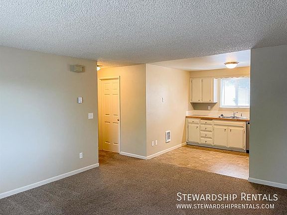 First Full Month of Rent is FREE Upstairs unit in a small complex. Two bedrooms with an open living room and kitchen. On site laundry room and limited free parking. $35 monthly utility fee covers water, sewer, and garbage. Residents are responsible for electric. 1 year lease - $1,200.00 or month to month - $1,300.00. Deposit is equal to one full month of rent. *Property showings for approved applicants only* No Application Fee! Apartment Carpet Courtyard Electric Heat Limited Free Parking Pets Allowed Upstairs Vinyl Windows
