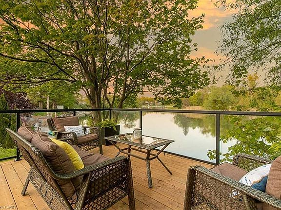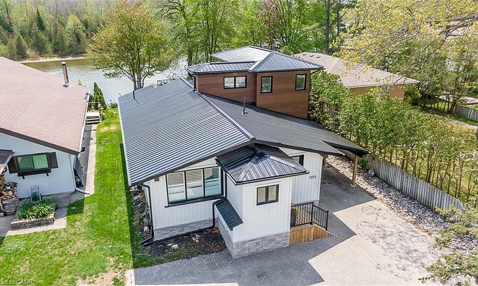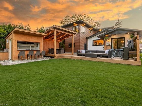 Yes, 1359 Mosley is located on a lively main road, but don’t let that fool you. The real magic happens out back! Step beyond the front door and you're instantly transported to your own private paradise on the Nottawasaga River with direct access to Georgian Bay. Paddle out from your backyard, soak in the views, or unwind in the hot tub under the stars. While the front offers the convenience of being close to everything, the back delivers tranquility, adventure, and true waterfront living. It really is the best of both worlds. Inside, the open-concept layout has a coastal vibe with gorgeous hardwood floors. The living area features a custom shiplap gas fireplace, perfect for cozy nights, while the walkout from the main floor opens to a covered deck ideal for BBQs and entertaining. The stylish two-tone kitchen, designed by Granite Works, showcases granite countertops, a peninsula with seating for two, glass cabinets with crown molding, and pull-out corner organizers. A large kitchen window captures breathtaking views of the backyard and river. In 2020, a loft addition created a private primary suite with clear Nottawasaga River views. The loft includes a spacious bedroom with crown molding, a custom walk-in closet, and a 4-piece ensuite with matte black hardware, a subway-tiled vanity and shower with honeycomb tile, and glass doors. With five bedrooms in total, this home offers plenty of space for family and guests. Two bedrooms are located on the lower level, which has a cozy cottage feel with a gas fireplace, 3-piece bathroom, dry bar, and pool table area (pool table negotiable). Step outside to an entertainer’s dream backyard featuring a large viewing deck with glass railing, a 6-person saltwater hot tub, a covered cabana, and a 2-bedroom bunkie with tiki bar. This exceptional property perfectly blends convenience and peaceful waterfront living, offering the ultimate Wasaga Beach experience.
