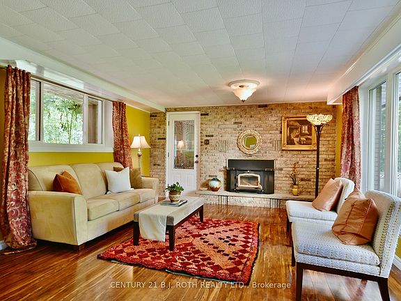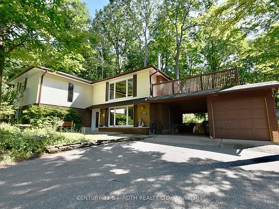 Welcome to this charming 3-bedroom, 2-bathroom detached home in the highly desirable community of Midhurst. This well-built 1970s house sits on a generous 100 x 200 ft lot, surrounded by majestic trees and lush vegetation. The terraced backyard, filled with perennials and wildflowers, offers a serene and picturesque setting. The main floor features elegant Japanese cherry hardwood floors, two walk-outs to the deck, and a bright living room. The primary bedroom includes a walk-out to the backyard, while the second bedroom is exceptionally spacious with a walk-in closet. The 4-piece bath boasts a rain shower, soaker tub and cork floors. The walkout basement showcases engineered hardwood floors, large windows and a second wood fireplace,. Also on this level is a bedroom, a 3-piece bath, storage, and a laundry area. Enjoy natural views from every window and take advantage of the nearby Hunter Russell Nature Trail and Willow Creek. Family friendly neighbourhood within waking distances to Forest Hill Public School. Don't miss your chance to own this delightful home in one of Midhurst's most sought-after areas. Book your showing today!