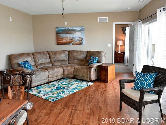 Stunning Lakeview from this well cared 3 bedrm, 2 bath Unit located in an ideal location by land & water. Enjoy all the amenities of Osage Beach-close to dining, shopping & hospital. Once inside you are greeted by an Open Floorplan with great flooring, Spacious Kitchen w/ pantry, Great room that leads to a Concrete Covered Deck w/ storage unit. The Master Bedrm w/ Master Bathrm w/ double vanity sinks, jetted tub & walk-in shower, walk-in closet. 2 additional bedrms & full bath. Full laundry. The bedrooms are great size w/ room for all your guests. Includes a 16x48 Boat slip & a Garage! Only one floor up & elevator on site. Complex is only 50 unit w/ a great lakeside pool w/ waterfall. Breathtaking views located in a cove w/main channel view. Unit includes most furnishings-only a few exclusions. Would make a great getaway to the Lake or even a vacation rental- Compare and see in this location- this is a great find! Special assessment will be paid at closing.