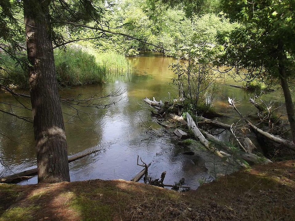 On 17 acres of paradise !!! Very private wooded area with mostly Big Sauble River frontage!!! The house is a converted garage kit. Open concept high ceilings with a huge glass sliding door facing one of many beautiful views of the Big Sauble River.