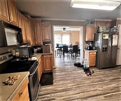 80 Acres of grass that is fenced and cross fenced with 3 ponds. The south barn is 84 x 26 and north barn is 30 x 40 with a 15 x 40 lean-to. The house is a 2004 triple wide manufactured home with 2,170 square feet. 3 Bedrooms, 2 baths, living room, dining room, family room with total electric central heat and air. New plank flooring has been installed and will be completed. Extra large attached garage with 784 square feet.