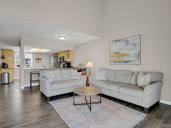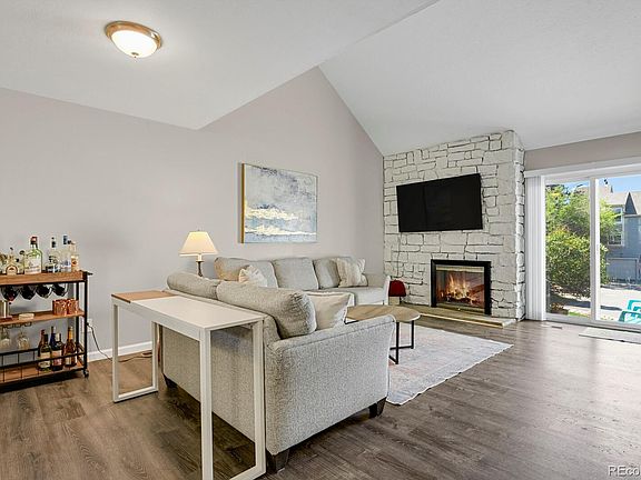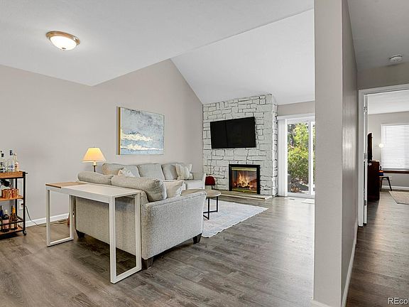 Welcome to this beautiful end unit town-home conveniently located in Chimney Hill @ Heather Ridge. Complete with a walk out basement and attached garage! The vaulted ceilings and newly updated laminate flooring give this home a sleek and modern look. The kitchen has been updated with additional cabinets including the perfect coffee bar. The living room provides plenty of entertainment area and is complete with a cozy fireplace. There is a private patio off of the living room perfect for soaking up the sun. Also on this main floor you'll find a large bedroom and a full bath. The bath is accessible from the hall way but is also perfect for whoever occupies that room. Head upstairs and you'll find the primary suite that has been fully enclosed (this floor-plan formally had the open loft). This suite has lots of room and is complete with a walk-in closet, 2nd closet for extra storage and full bathroom with dual sinks and a large soaking tub. Downstairs from the main floor is the entrance from your private garage, providing walkout access for the basement area. Fully finished (except for the laundry/utility area) this fantastic flex space makes a wonderful game room, or could be used as office/guest room space. There is also a half bath in the basement. The community offers lots of visitor parking space and is conveniently located near trails, shopping, dining, 9 mile light rail station and 225.