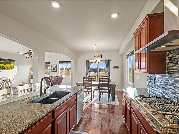 The open-concept floor plan is filled with natural light and showcases granite countertops throughout, creating a seamless flow between the kitchen, dining, and living areas—perfect for both everyday living and entertaining. The spacious primary suite is thoughtfully designed and pre-framed for a future deck, offering the opportunity to enjoy unforgettable Colorado sunsets and mountain views right from your own retreat.