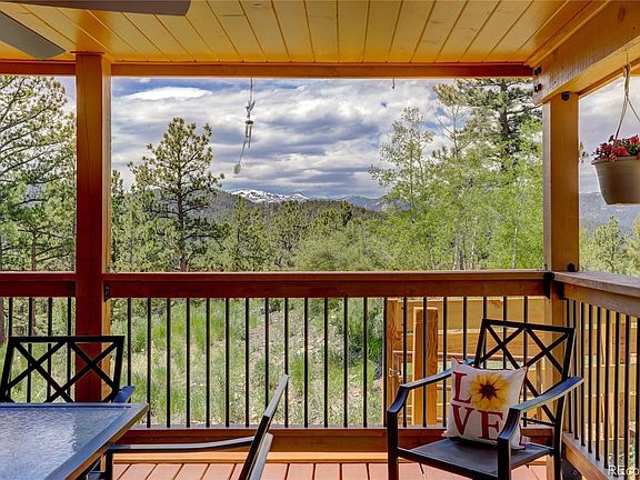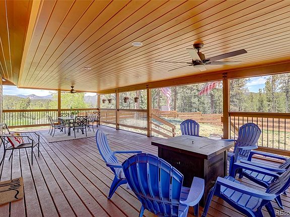 Modern farmhouse brings a clean feel to mountain living! This sprawling 6,400+ square foot home has 9 bedrooms and 7 bathrooms with breathtaking views of your 9.11 acres and beyond. The home was fully renovated within the last year including a 4,000 square foot addition and has so many amazing features to list. The soaring, vaulted ceiling adorned with beetle kill pine gives this home that true mountain retreat feel. You and your guests will love relaxing with the indoor-outdoor fireplace, rooftop deck, and wet bar in the living area. The 48" chef-style gas stove and double oven, huge island, and deck off of the kitchen are great for BBQing. The second floor has 4 bedrooms, including the luxurious master bedroom with its own private deck, fireplace, and a spa-like, 5 piece master bathroom with a private washer/dryer combo for convenience. The basement has 3 bedrooms, one with built-in beds and another with a custom rock climbing wall. The basement also has its own laundry room and an amazing sunroom with a wet bar. The lower level has a private 1 bedroom and 1 bathroom living space with separate laundry and a full kitchen. The home is equipped with 3 cisterns that equal 7200-gallon for water storage and the well can be used for domestic and livestock. A-1 zoning allows for horses and other livestock. Build your dream barn or workshop on the ready-to-build excavated site that has a private road and an area for horses or other animals. Cell phones work great and high-speed internet is available. You are only 3 minutes from 285 and just over an hour to DIA. Don't miss your opportunity to own your dream Mountain Home!