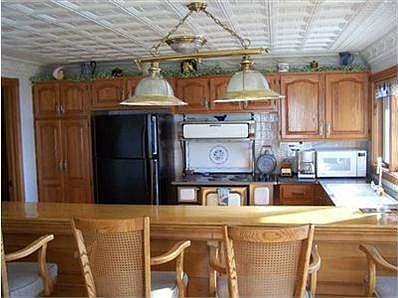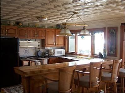 50 Ft. of Bear Lake Frontage and 3/4 Acres m/l. This home was completely gutted and remodeled with top quality materials. It features tin ceilings, birds eye maple flooring, crown molding and great lake views in the Living Room, Dining Area and Kitchen. The snack bar in the kitchen is from the Hotel Northern with built in Oak cabinets, blender, handmade ceramic tiles, electric replica of wood cook stove, and corian counters. The full bath in the house has a heart shaped bubble tub, ceramic tile on the floor, walls and ceiling with inlaid gold tiles around the tub. There are stain glass valances throughout. The living room has a Lopi Wood Stove and antique phone booth. The master bedroom has oak floors and spare bedroom natural cherry floors. The 1225 Sq. Ft. Garage has a 10x8 bathroom with laundry and a 21x16 bunk room with kitchenette, sitting area and beds. It is decorated nautical. The 627 s.f L-shaped deck has craved wooden bears and heavy rope as railing and built-in gazebo. Brokered And Advertised By: Coldwell Banker A.L.M. Realty Listing Agent: Sandra Larson