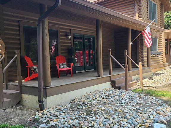 Do you enjoy those getaways to the Cabin in the woods ? Do it every day !!! This is a 3 bedroom 2 full bath log home that sits on 2 acres and was built in 2002. It has an open floor plan with cathedral ceilings and a gas fireplace in the main living area. There is an unfinished basement that could add more finished living area. The home has a geothermal heat and air system that has been regularly serviced each season. The home sits on 2 acers and has porches on 3 sides of the home. There is also a 30 x 40 outbuilding for all your storage needs.