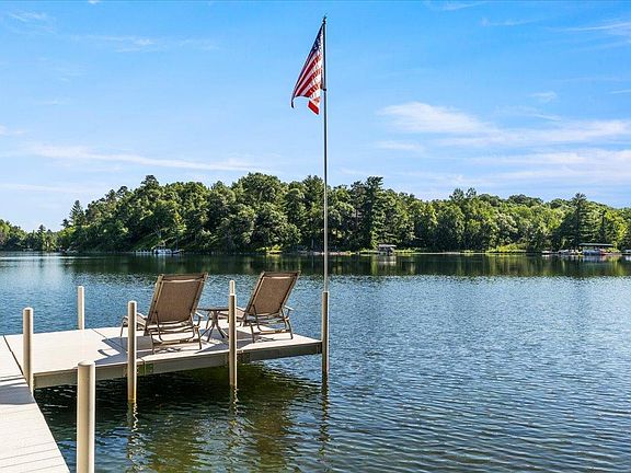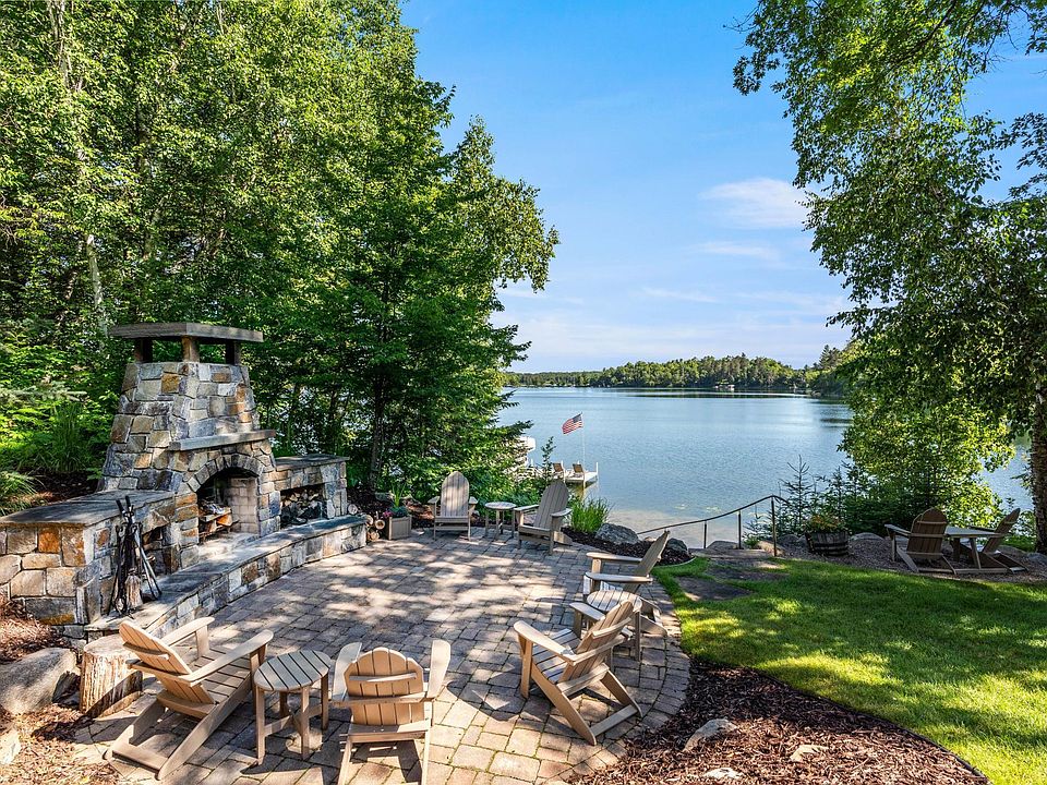 Outside, the gently sloped backyard leads directly to the water's edge, with meticulously maintained landscaping and mature trees adding privacy and beauty. A stunning paver patio and wood-burning stone fireplace extend the living space outdoors—perfect for evening bonfires, quiet mornings, and celebrating every Minnesota season.
