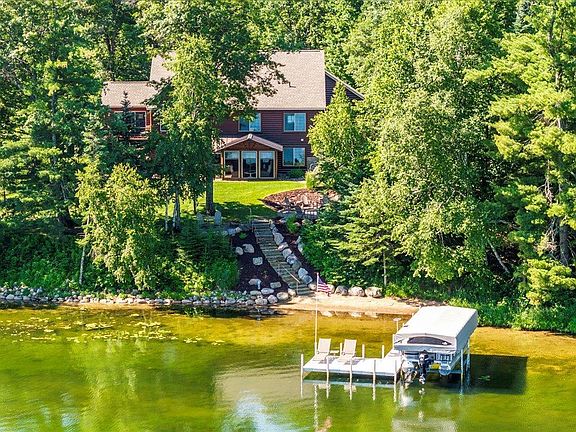 Set on the crystal-clear shores of Ox Lake, this beautifully maintained lakefront retreat offers an exceptional blend of craftsmanship, comfort, and outdoor living. With 136 feet of sandy frontage and nearly two acres of landscaped grounds, the property captures the essence of Up North living—peaceful, private, and ready for all-season enjoyment.