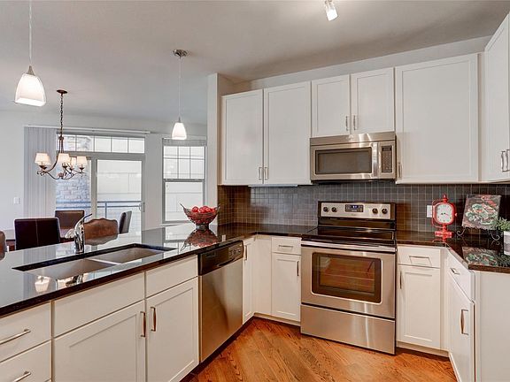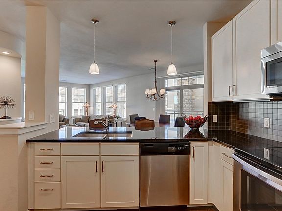Gorgeous Mountain Views! Barely lived in-like new! 2 Master Suites & many upgrades! Upgraded kitchen has slab granite, stainless appliances, upgraded cabinets & large island w/eating space. Corner unit = large windows for lots of natural sunlight & 2 balconies. Hardwoods, great room feel. Laundry in the unit. Secure underground garage with designated parking space. Unit comes with additional large storage area on the same 3rd floor.