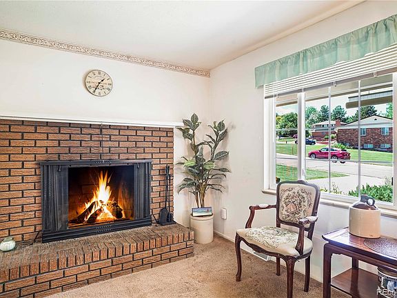 - Description: Carpeted, With Tile In Front Of The Entry Door. Wood-Burning Fireplace Set In A Brick Hearth. Window To Front Porch, And Open To Dining Room.