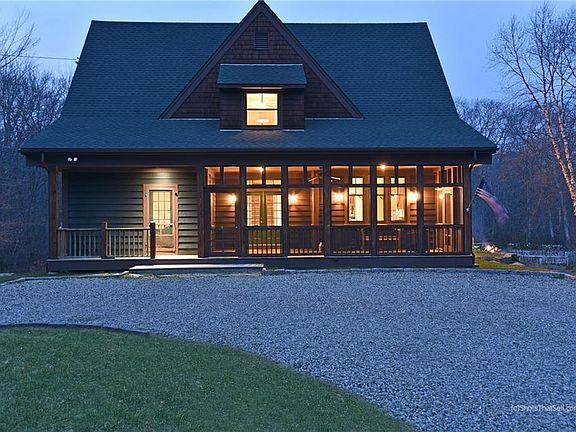 Immerse yourself in the pleasures of this property. Pristine New England Shingle Style designed home in the center of South County. Reminiscent of a storybook fairy tale, this beautiful home is nearby everything and neatly tucked into a quite natural woodland setting. This 3-4 bedroom mini-estate was built by the owner and is located in desirable Yawgoo Valley neighborhood, uniquely situated with easy access to NK, SK, Jamestown and Charlestown. Privacy with proximity. This home of 2x6 solid construction and attention to detail features architectural charm inside and out beginning with the private drive which winds through a series of gentle curves inviting you into its grass lawns with mature landscaping and flowering trees. The 4 main rooms on the 1st level are hardwoods-great room, library/study, dining room are open to one another with the kitchen as the heart of this home. The eat in kitchen area is spacious with a huge center island, stainless appliances and plenty of storage. A fieldstone fireplace with flanking built in cabinetry adds warmth to the great room. The high ceilings and transom sized windows pour natural light deep into the rooms. Voluminous spaces foster a sense of comfort and ease. The mud room contains a side entry door, built in coat hook and bench area and is connected to the large laundry area and full bath. A wonderful screened in porch serves as an attached exterior room contained within the beautiful cedar siding and this nature lovers' paradise. A wrap around lawned patio area connects the side yards and has an outdoor fire pit for gathering. A gracious craftsman built center staircase with wooden banister leads to the upstairs hall and second floor living. Two generous bedrooms, full bathroom and sitting area line the center hallway and lead to the master suite. This extra large bedroom is airy and light filled. The master bath is newly remodeled complete with jacuzzi tub and walk in shower. The lower level is finished with 2 large rooms and plenty of extra living space including a 4th full bath with laundry hook ups. Pre-designed to accommodate an in-law suite these extra large rooms have been used as a media room/playroom.office. There is also additional unfinished storage area. This lower level is all walk out accessible to the rear yard. This gorgeous property is naturally beautiful and graced with an abundance of mountain laurel and rambling stone walls.