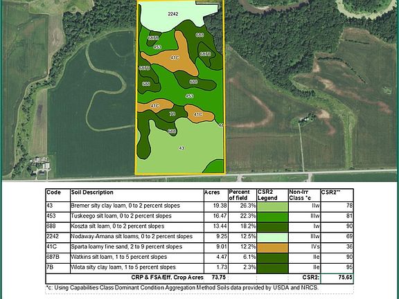 79.00 Acres located 4 miles southwest of Riverside. This is a one-of-a-kind recreational property with a mixture of native CRP, timber and pond. An abundance of deer, turkey and pheasants live on and around this land. This listing provides a rare opportunity to purchase an attractive, recreational property with an annual revenue of $21,905.00.