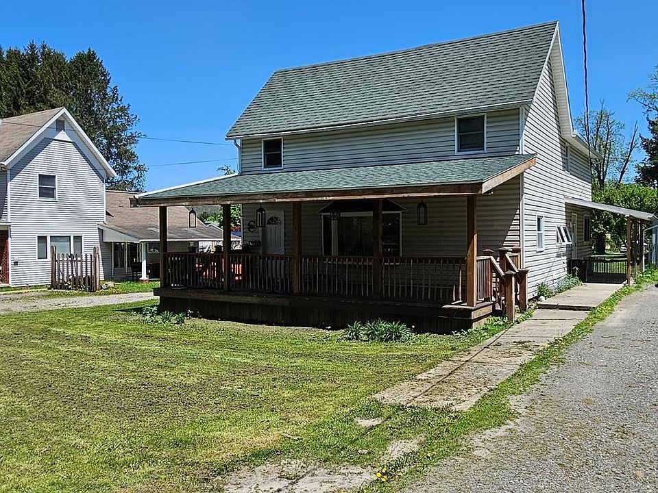 This 3-4 Bedroom, 2 bath home is perfectly located in town, with a nice level lot to enjoy the outdoors, plant a small garden or room for your pet to run a little. This quant home provides great flow from the dining room into the living room to give you the open concept feel that you are looking for. The kitchen has ample space for a small bistro breakfast area. The first-floor bedroom is currently used as a pantry but would be a perfect space for a small bedroom or office space. The barn provides you with extended storage options man cave or a great workshop space. The large covered front porch/deck area provide you with additional living space on a warm day to enjoy the outdoors. You won't want to miss this house, schedule your showing today!