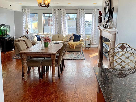 This amazing 2 bedroom 2 bathroom condo is nestled in the heart of Union City! This is a top floor(penthouse) corner unit flooded with natural lighting and NYC views, in a smaller 8 unit building! It features a large well laid out living room area with a separate dining room and an open floor plan kitchen with a breakfast bar/island. Kitchen features black granite counters, back splash, stainless steel appliances (Ref, d/w, stove, m/w). Central air and heat, hardwood flooring throughout, washer and dryer in the unit and a fireplace that lights up with wall switch. There is one deeded car garage space for this unit. Original owners living since construction in 2007. One block from Park Avenue, NYC buses, grocery shopping, this is a commuters dream, as it is one of the last NJ stops, arriving into Port Authority within 15 minutes! Those with children, Union City is home of the acclaimed Sarah M. Gilmore Academy, a blue ribbon school.
