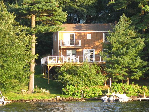 Gorgeous waterfront home with beautiful Acacia Hardwoods on the first floor and a newly renovated kitchen with custom bar area. Fabulous wrap-around deck on the main floor! The unfinished basement downstairs offers a walk out onto your paved patio. Upstairs, the master suite offers a balcony to enjoy coffee in the morning while catching the sunrise or wine in the afternoon as you watch the sunset. Large floating dock will accommodate several water craft.