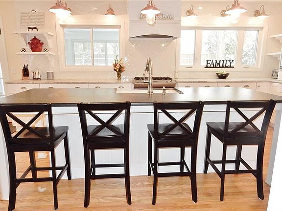 All you would expect in a classic brick cape PLUS a stunning UPDATED INTERIOR and OPEN FLOOR PLAN! Lovely hardwoods throughout, first floor master suite with new bath, second floor dormers, fireplaced living room, new first floor laundry, enclosed porch off the back, AND... GORGEOUS, EXPANSIVE WHITE KITCHEN by Inde Designs with HUGE CENTER ISLAND/breakfast bar, solid surface countertops, stainless appliances and coffee bar area!! All perfectly situated on a private, fully fenced wooded lot, minutes to the Village, shopping, expressways, and canal! **Square footage 2164 is per appraisal from previous owner** There is a fun playroom/potential office/flex space through the front bedroom closet on the 2nd floor, not counted in town square footage (1716).