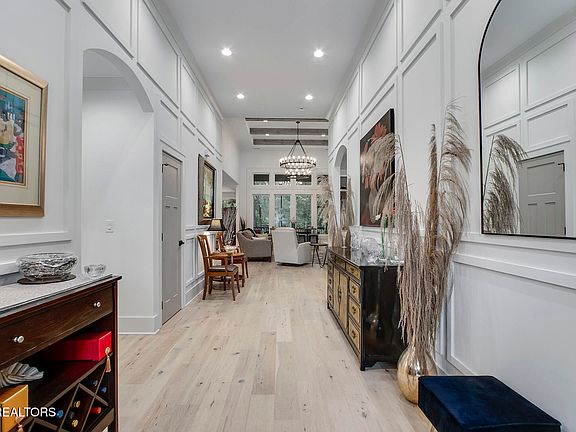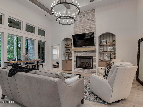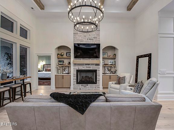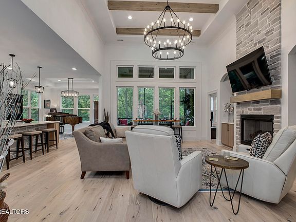 HGTV INSPIRED DESIGN! Better Than New! The stunning covered front porch welcomes you to this sophisticated one level home with open concept flowing floor plan. Fall in love with the soaring ceilings throughout, grand foyer, spacious beamed great room with stone fireplace, built ins and abundant windows. Chef's kitchen offers stainless steel appliances, quartz countertops, walk in pantry, 42 inch cabinets and soft close drawers, spacious island perfect for entertaining and opens to the trey ceiling dining room flooded with natural light. The luxurious beamed owner's suite offers dual walk in closets with custom shelving and boasts a spa-like bathroom with a freestanding tub, glass walk-in shower with multiple heads and private water closet. This split bedroom floor plan for privacy adds spacious guest rooms and generous closets. The huge laundry room with loads of storage opens to built in cubbies off the garage. The custom quality construction and fine finishes throughout the home include light hardwood floors,Joanna Gaines style light fixtures, arched openings and custom moldings. Screened-in covered deck with a stone wall and tongue and groove ceiling to relax on. A newly added concrete patio below is the perfect retreat for outdoor dining surrounded by mature trees. Don't miss the 2 concrete pad storage rooms and the oversized 2 car garage with pull down stairs for bonus storage. In this home, Dreams really do come true.