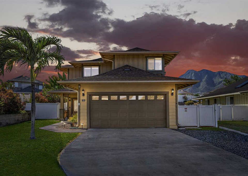 Located in the sought-after community of Na Hoku in Maui Lani, this spacious 2241 square foot home is move-in ready. This two-story contemporary home with dual central air has an open floor plan featuring 3 bedrooms and 2 1/2 baths. The main floor has 20-foot vaulted ceilings in the living room, laminate wood flooring throughout and ceramic tile in the kitchen and dining area. The main floor dining area (right off the kitchen) is big enough for an 8-person dining table; plus, there is another separate formal dining room! The kitchen is complete with a large island that has the capability for pull-up stools to be used as a breakfast nook. Corian countertops and large shelved pantry finish this beautiful and spacious workable kitchen. The chef in you will love it! The main floor also has a full-sized office and a half bath. The office could be converted into a 4th bedroom if desired. Lastly, on the main floor there is a separate laundry area with new Maytag W/D with 10 transferable warranty. Main floor finishes with access to an oversized 2 car garage. The second floor has 3 bedrooms and 2 bathrooms. Wake up in the master bedroom and stroll out on your 200 sq. ft. private 2nd story lanai for morning coffee with stunning views of the West Maui mountains and Haleakala. Upstairs also has another space for a 2nd office nook or use the large bonus area for a second family room. Upstairs has high quality carpeting throughout, with new tile in the bathrooms; both of which are only one year old. The home has new ceiling fans, lights, and interior paint throughout. Lastly, glass sliding doors off the kitchen open to a 200 sq. ft. concrete patio and private fenced in backyard. Back yard is two-tiered with lemon tree, plumeria trees and newly planted Hawaiian Hibiscus on the upper tier â plenty of room for a garden of possibilities. Come see this beautiful centrally located home only a few blocks from Pomaikaâi Elementary School and just across the street from the Dunes Golf Club! Come see this great home in the heart of Maui!