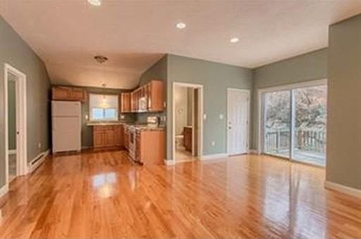 Beautiful two bedroom one bathroom apartment ideally located near shops, restaurants and with great access to highway. Hardwood floors throughout, high ceilings, nicely painted, laundry in unit and parking. Private entrance. All utilities included. Credit score of 680+ a MUST. NO PETS, NO SMOKING.