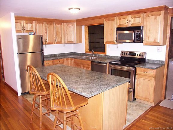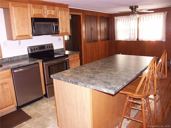 Looking for a Ranch home located on a quiet residential street just a short drive to downtown Mystic? This may be the one! Lovely 3 bedroom, 2 bath embankment ranch that has great space both inside and out. Main level has a large living room with fireplace, fully applianced kitchen with island and dining area with fireplace, hardwood flooring and 3 bedrooms and full bath. Living room has a large slider that leads to the raised deck that overlooks the private rear yard. The lower level has a large finished L-shaped room with new flooring and walk-in closet. There is a beautiful bath just steps away with ceramic tile, jacuzzi tub and a large walk-in shower. Lots of storage space in lower level and garage. A big portion of rear yard is fenced in, featuring stone walls, fire pit area and the steps to the raised deck. Low maintenance vinyl and a new 30 year roof make this a smart buy in Mystic.