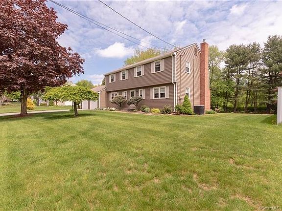 Classic Wethersfield Colonial set on a level 0.37 acre Apple Hill Neighborhood lot. This inviting 2,376 square foot home features four bedrooms, two full and one half bathrooms. The eat-in kitchen offers granite counters, formal dining room has hardwood floors and spacious formal living room includes brick fireplace. There is also a first floor office/den, bonus family room with gas fireplace, exposed brick and slider that leads to back deck. Second level features a Master Bedroom Suite, three additional bedrooms all with hardwood floors and the second full bathroom. There is also a walk up attic for additional storage. Lower level laundry, full basement with hatchway, whole house generator hookup, replacement windows, two car attached garage, public utilities, natural gas and central AC! Open and level backyard with garden and deck! Don't miss out, schedule your showing today!