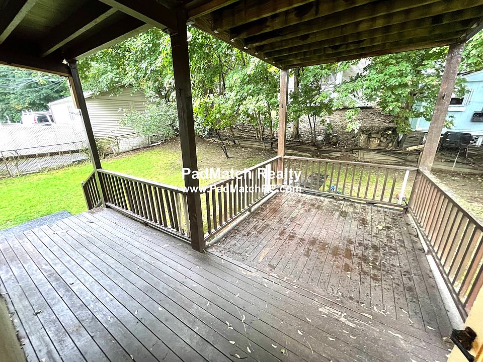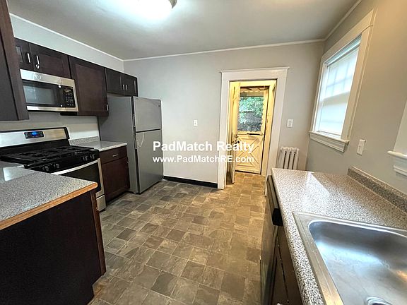 Spacious 3 bedroom apartment. 1st floor, front to back. 3 large bedrooms with closets in each. Large living room. Separate, updated, eat-in-kitchen with stainless steel appliances. Dishwasher and built-in microwave over the stove. Large rear porch located off the kitchen. Laundry in building.