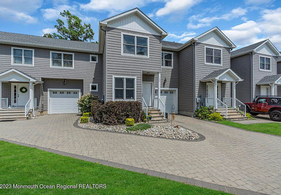 Welcome to the Rivers Edge waterfront, fee simple community, just minutes away from downtown Red Bank. Paver driveway and walking trail leads to this gorgeous model home with attention to detail and craftsmanship. Wide plank flooring, neutral decor, crown molding, wainscoting, and recessed lighting throughout. Private office w/view of the front yard and river. Cozy family room with pretty built out gas fireplace overlooking rich espresso bean cabinetry kitchen complete with bar style granite counter sitting, stainless steel appliances, and walk in pantry. Sliding glass door to back yard paver patio. Large master bedroom suite with soaking tub, granite counter double sinks, and tiled shower enclosure. Finished basement with full bath, separate zone HVAC, wet bar, & storage. Move in ready!