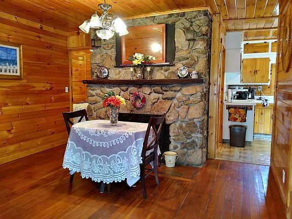 Country Style Knotty Pine 2 bedroom ranch with impressive field stone fireplace. Cozy, warm, and move in ready. This beautiful home has a large sunny level lot and fenced brick patio for gathering on those lazy evenings. Walk up attic for storage and a partial basement with inside access.There's also a sandy beach and recreational pond nearby. Don't miss this delightful home!