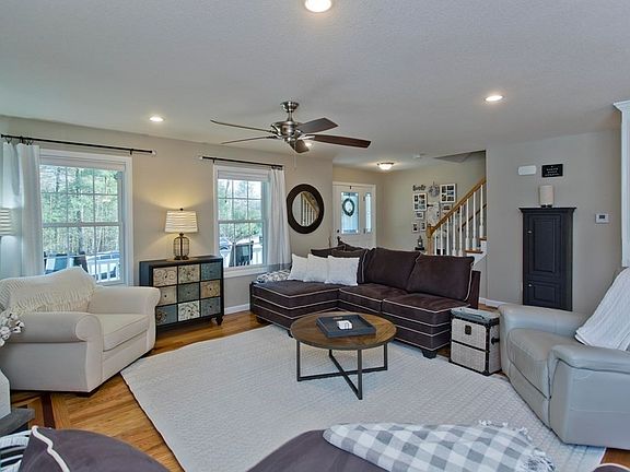 PRISTINE Colonial home at Barrington Estates offers a versatile floor plan! This home features an open floor plan, Quartz counters, abundance of Shaker cabinets, under cabinet lighting, large center island, Stainless Steel appl & oversized pantry. Mudroom w/custom built ins,a large half bath off the kitchen, attached 2-car spotless garage. The living room with a gas fireplace leads into a dining area with gleaming hardwood floors, tons of natural light, sliders out to the TREX deck with black balusters & stairs which lead to an amazing entertainment-relaxing area-professionally lighted and landscaped. Second floor offers a luxury Main Suite with 2 walk-in closets & bath with stunning tiled shower stall, double vanity and linen closet, spacious guest bedrooms provide large closets, shared full bath with double sink, tub/shower & linen closet! Gorgeous living space/apartment in finished walkout basement features kitchenette, bedroom, full bath! Showings begin 5/14 11am-1pm.