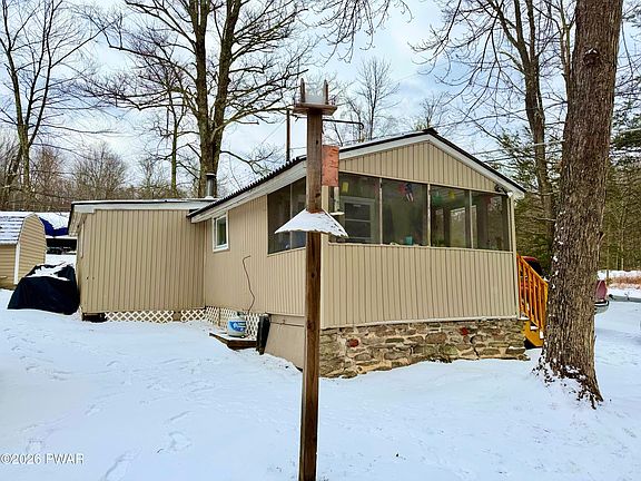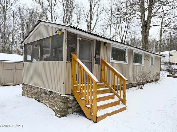 Escape to the Lake Wallenpaupack area with this charming seasonal, frame-built cabin on leased land in Greentown, PA, just a short walk to the lake and boat launch area / recreational fun and surrounded by 5000 + acres of the Delaware State Forest--perfect for fishing, hunting, and outdoor adventure. This inviting two-bedroom retreat offers a cozy kitchen, living, and dining area warmed by a woodstove that delivers both charm and cozy heat! Complete with new stairs and a larger bedroom window that brings in abundant natural light. Relax on the beautiful screened-in porch, gather around the outdoor fire pit with seating area, and enjoy year-round access to the cabin, with seasonal interior water typically shut off December through March, weather permitting, plus a year-round well faucet available. Additional highlights include an 8' x 10' shed with workbench and cabinets, security camera system, stone driveway and an affordable monthly lot lease of $183.00 per month which includes Boat and camper parking, water, garbage, sewer and taxes--making this a fantastic and budget-friendly way to enjoy the Lake Wallenpaupack lifestyle. And don't hesitate call today for your private showing!!!