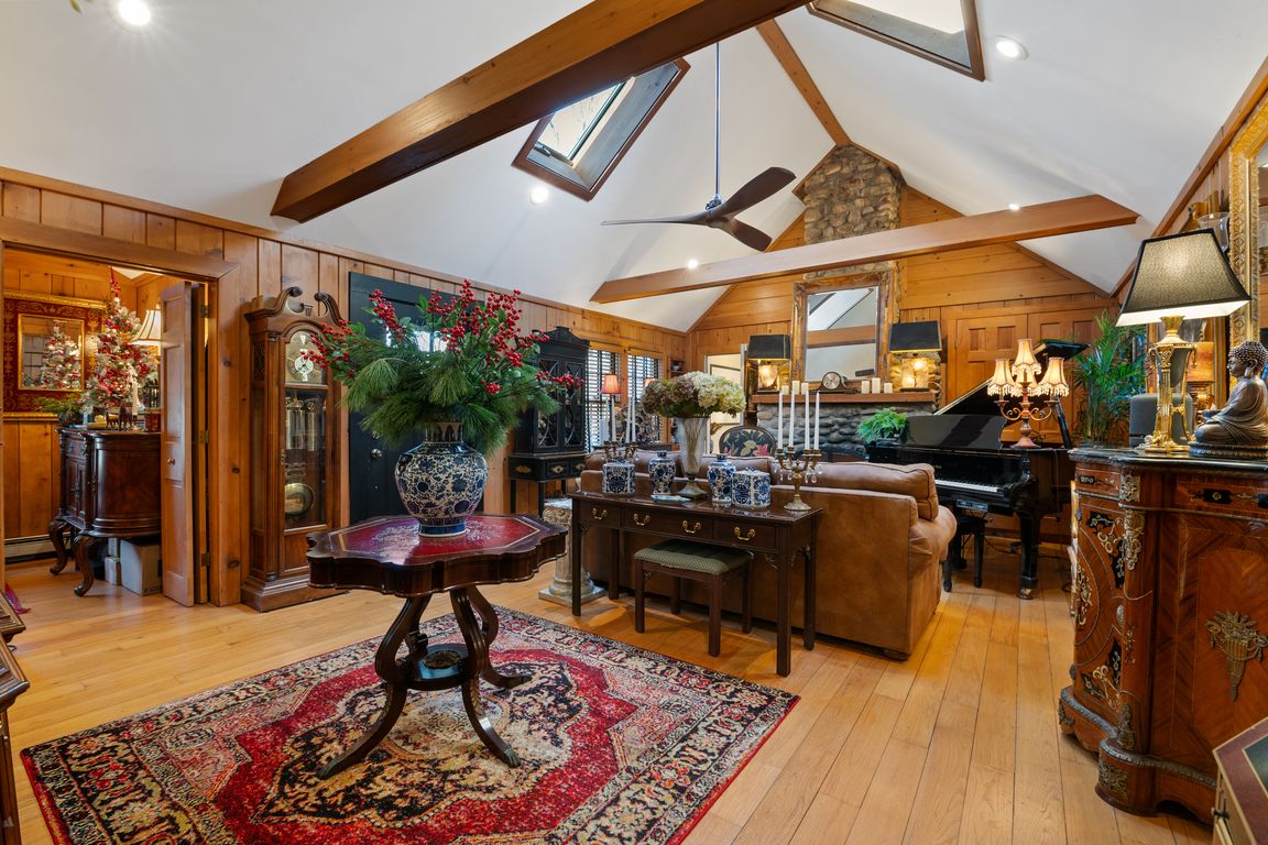 - First Floor Bedroom, First Floor Full Bath, Beamed Ceilings, Built-in Features, Cathedral Ceiling(s), Ceiling Fan(s), Chandelier, Chefs Kitchen, Formal Dining, Granite Counters, High Speed Internet, Natural Woodwork, Original Details, Recessed Lighting, Storage
