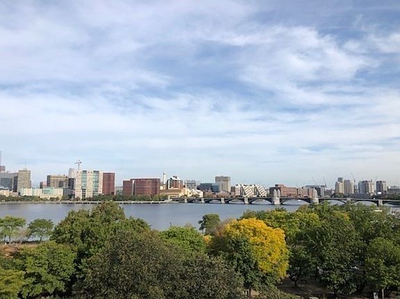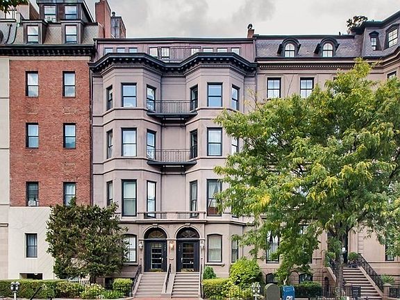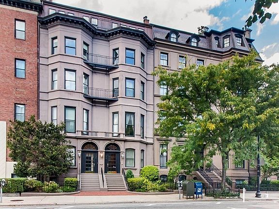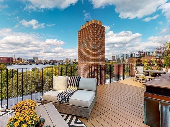 Stunning three bedroom two bathroom penthouse home located on the second block water side of Beacon Street in the historic Back Bay. The residence encompasses the entire fifth floor of the double wide brownstone with 5 skylights. Property amenities include direct Charles River views, direct elevator access, hardwood floors, central air heat and air conditioning, two fireplaces, in-unit laundry, professional management and ample storage. There is a wide open kitchen with breakfast bar, white cabinetry and granite countertops. The South facing sun filled master suite comes equipped with marble mantle fire place, built-out closet space and a renovated master bath with double sink vanity, radiant heat and large glassed in shower. This prime location residence also offers a large private roof deck with tremendous views and two deeded parking spaces. Central location allows for a short walk to the Public Garden, as well as the shops, restaurants and retail on Charles, Newbury and Boylston